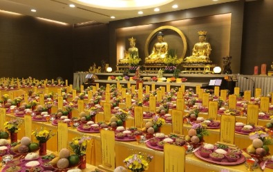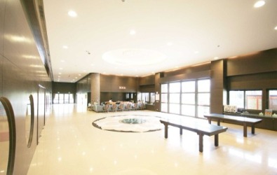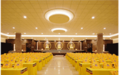 生命會館 埔津公司於中南寶塔前,打造一座可容納千人以上的大型祭祀殿堂,用地面積達三公頃,在此於定期舉辦超薦法會,誦經迴向,福資亡者;並為陽上啟建消災祈福法會。四周環境以園林造景,成為自然、優雅的清靜園地。 生機盎然‧莊嚴寧靜 生命會館」格局採自然採光通風的設計,有別於一般祭祀場所的幽暗,樓層地板選用光亮的特級大理石鋪成,與鑲嵌於天花板古典花紋互相輝映。